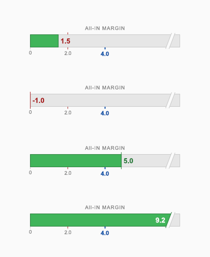This need can be easily served with a smaller bar which gives room for more useful features for re-setting the margin and also makes the actual data more legible.