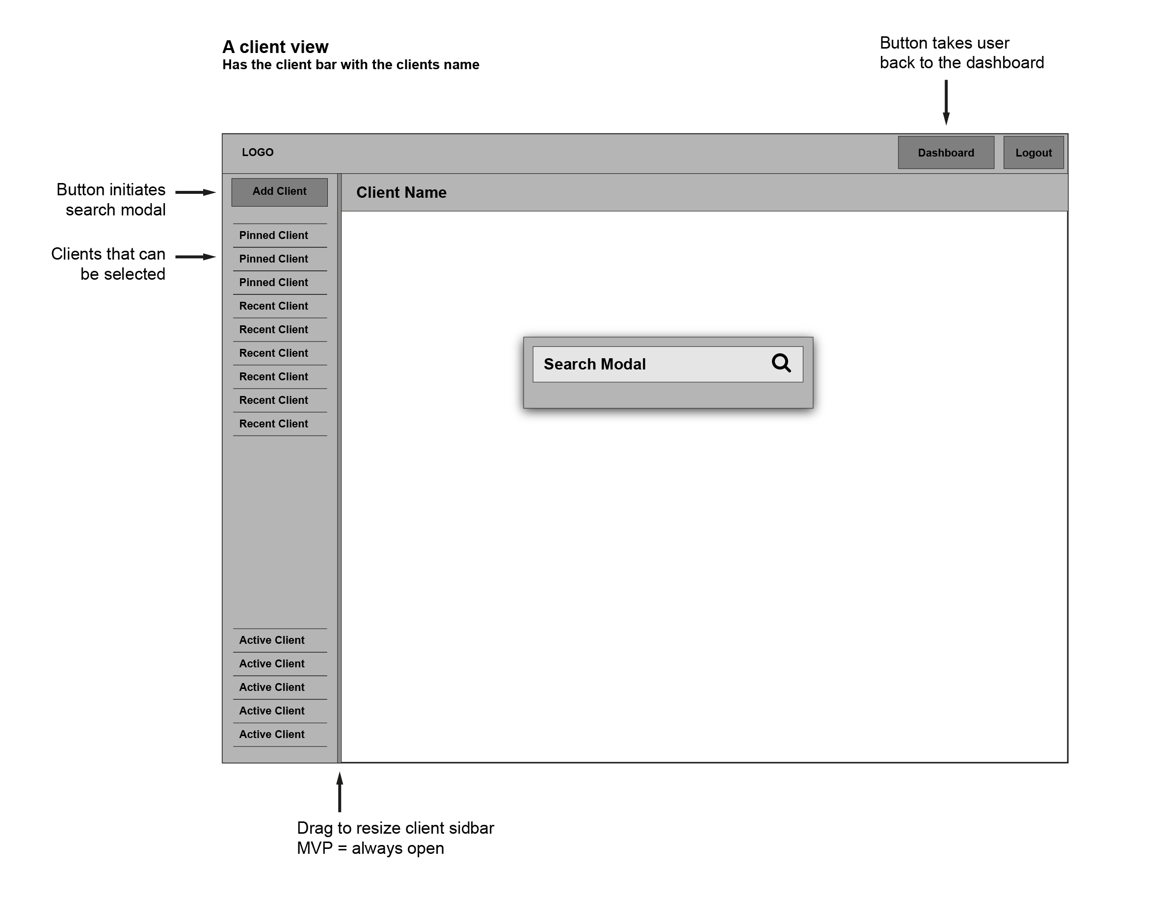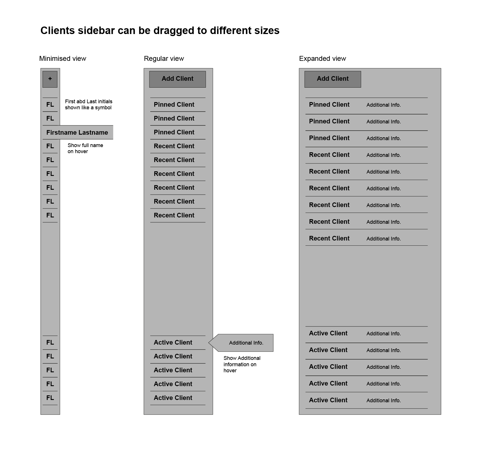 It became clear that the layout of the application was a limiting factor for future growth. Feedback from clients was that it had large, unused areas that were seen as inefficient. Some clients even described the app as looking 'unfinished'.